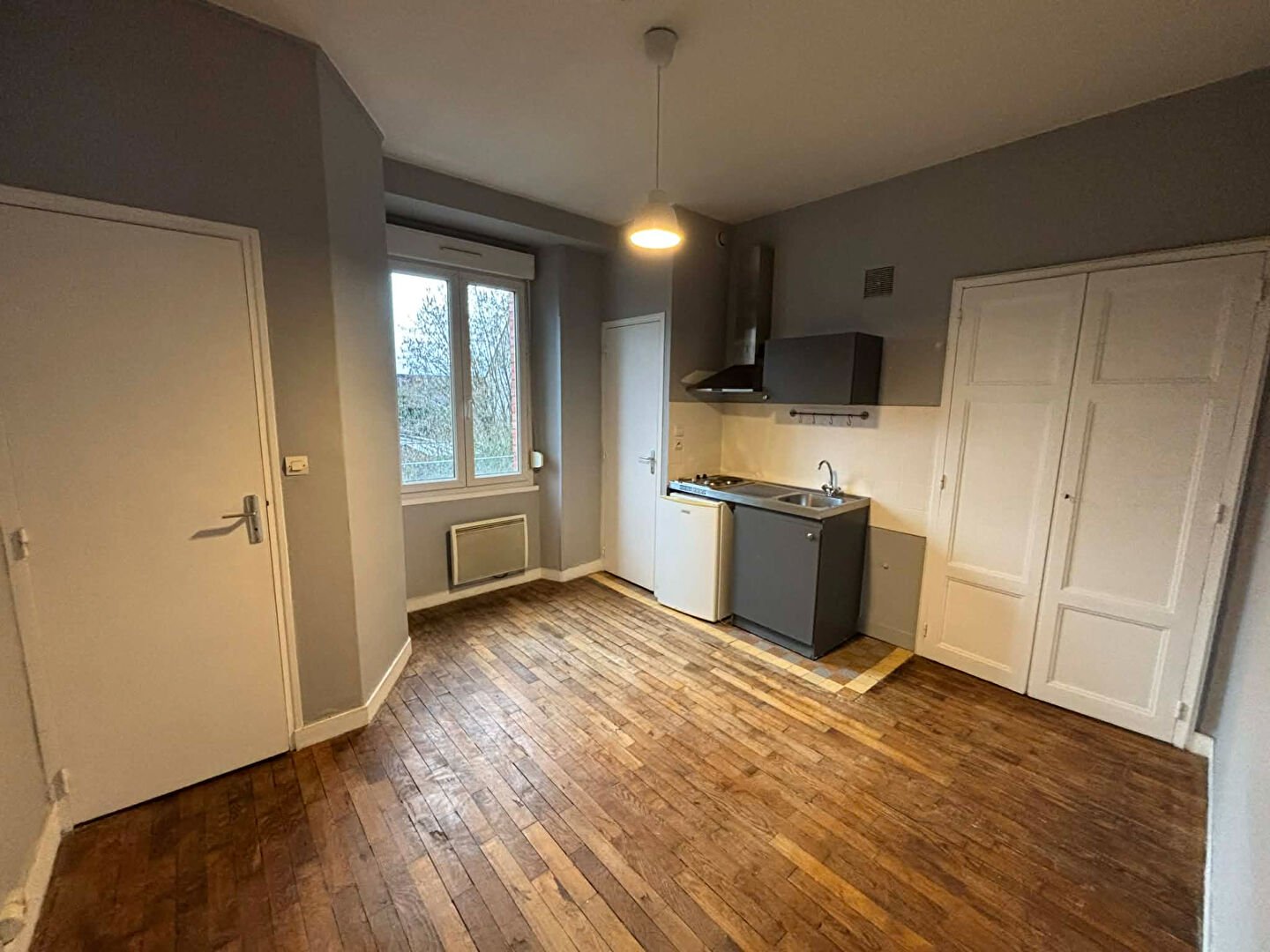 RENNES - rue de Saint Malo, proche des commerces, T1 bis donnant sur un jardin, comprenant : entrée cuisine, séjour avec cheminée décorative, WC séparés, une salle d'eau.